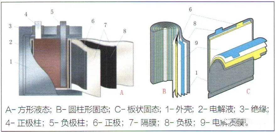 单体电池的形状有方形,圆柱形,板状等,如图2所示,方形又分方形叠片式,方形卷绕式,圆柱形又分圆柱叠片式 南瓜影院免费观看,圆柱卷绕式,包装类型有硬包,软包,硬包使用钢壳,铝壳,软包使用铝塑。