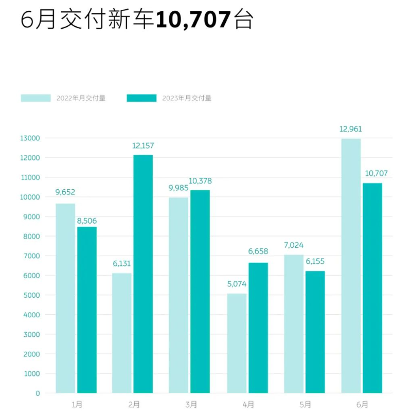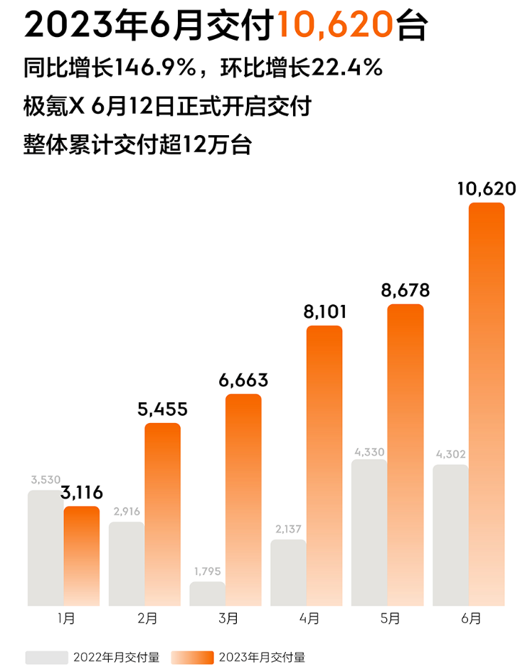 2023年6月交付10620台,同比增长146 南瓜影院,9%,环比增长22,4%,整体累计交付超12万台。。