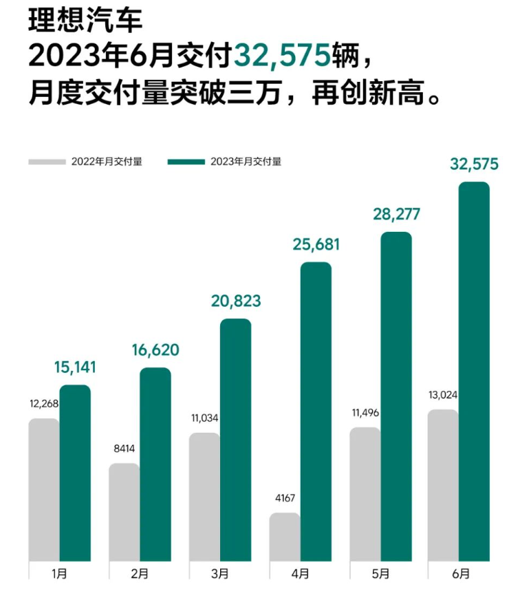 6月,理想共计交付新车32575辆,月度交付首次突破3万辆,环比增长15,2%,同比增长150 在线电影院,1%,坐稳新势力销冠位置。。