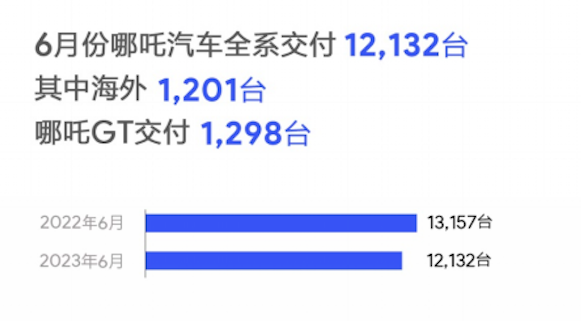 哪吒汽车6月全系交付12,132辆,其中,海外1201辆,哪吒GT交付1,298辆。哪吒汽车6月销量环比下滑6,9%,同比下滑7 南瓜高清播放,8%,是目前已公布销量数据的车企中唯一同环比均下滑的。。