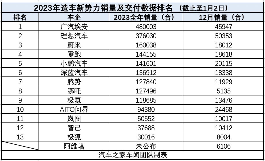 从12月份的销量数据来看,多数新能源车企销量均有大幅度的同比增长,比如智己甚至达到了同比增长2188%,月销量也突破了万台,岚图也同样突破万台销量,同比增长479%,极狐也实现了8000台的月销量,同比增长607% 南瓜影视资源,AITO问界,小鹏实现月销2万台,零跑和蔚来也接近月销量2万台,理想和埃安则在12月份销量“遥遥领先”,达到或接近5万台销量。