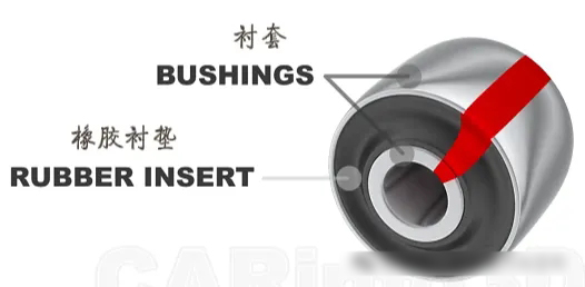 橡胶衬套由两层金属衬套组成,内部嵌入橡胶衬垫,是一种常见的连接元件。控制臂、扭力梁和减震器等的固定都依赖于这种部件。