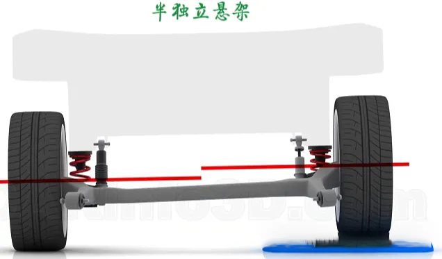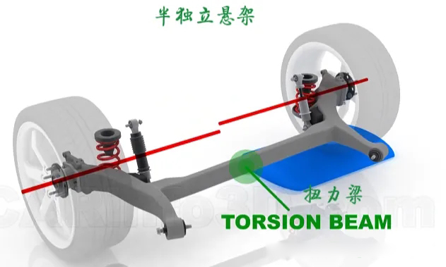在半独立悬架系统中,传递力的部件则主要是扭力梁。