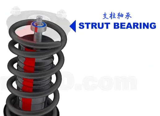 减震器的安装,上支柱支座是由橡胶衬垫连接的,同时由于其底部需要随控制臂旋转(麦弗逊式悬架),所以中间有个支柱轴承。