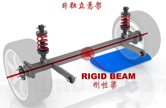 非独立悬架,顾名思义,其左右两侧车轮通过一根刚性轴相连,一侧车轮的起伏会直接影响另一侧 南瓜影院,导致车身晃动明显,多见于货车,客车及部分SUV。