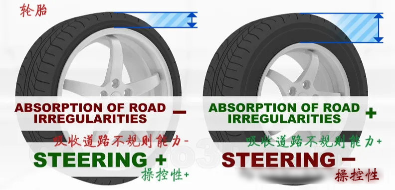 厚薄不同的轮胎,其舒适性和操控性是不同的。