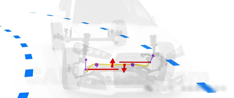 但此时在防侧倾杆的作用下,内侧轮子会受到一个下压力,使轮子与地面紧密贴合,从而增强汽车转弯时的安全性与操控性。