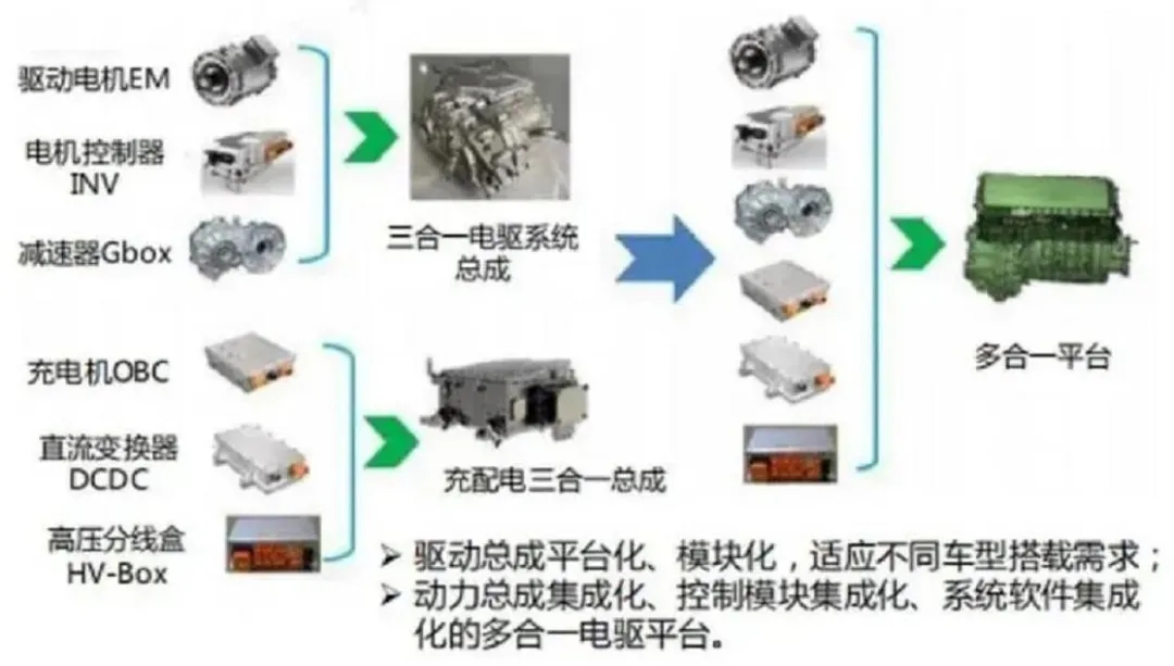 多合一将逐渐代替三合一:未来,除电机,电机控制器,减速器外 南瓜影院在线观看,高压分线盒,DC/DC,充电机OBC等部件也可能集成进动力总成系统,形成功能更全的多合一系统。