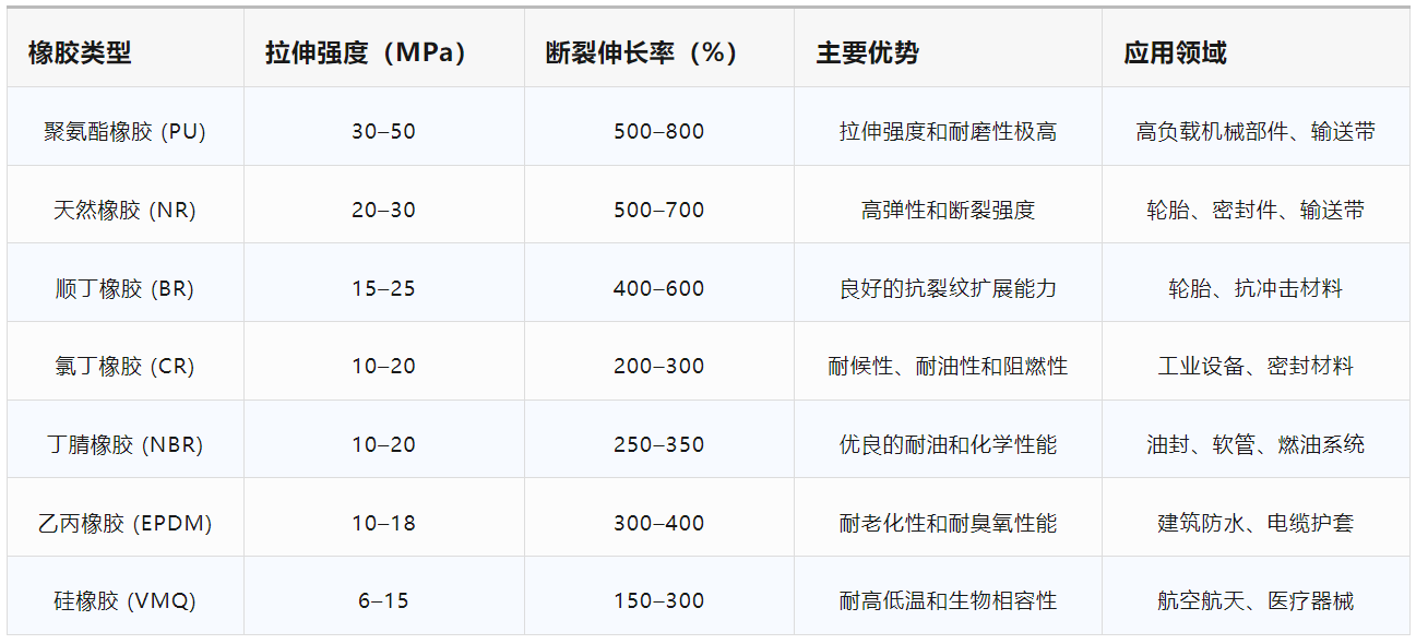 高性能橡胶材料排名及阐述: