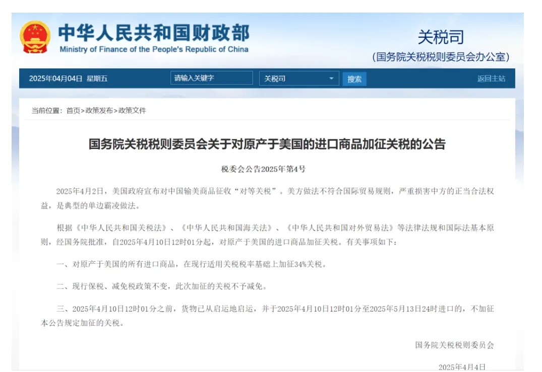 面对美国的挑衅,中国迅速作出反应,4月4日,中国发布反制措施,对原产于美国的所有进口商品加征34%关税,然而,美国并未收敛,反而变本加厉 南瓜高清播放,4月8日,美国政府宣布将对中国输美商品征收的“对等关税”税率从34%提高至84%,中国随即进行了同等关税的反制。