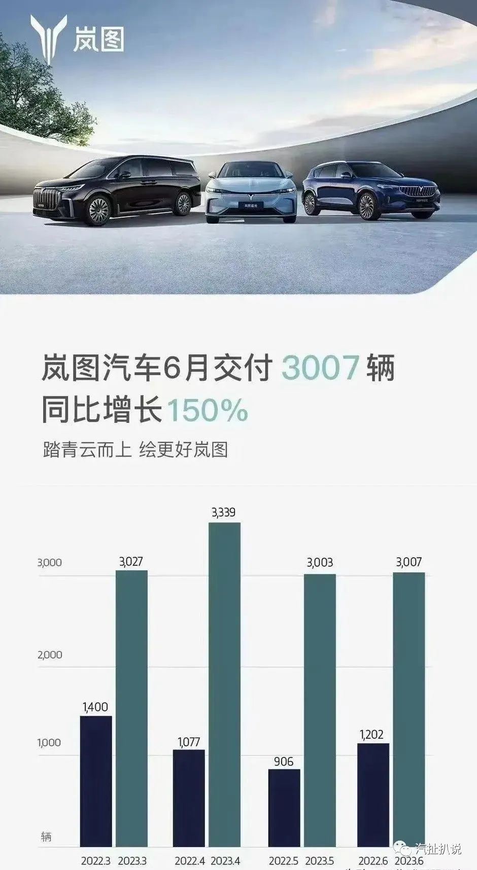 7月1日,岚图汽车公布了最新交付数据。2023年6月岚图交付新车3007辆,同比增长150%。岚图汽车自3月份以来连续四个月保持月销量超过3000辆。