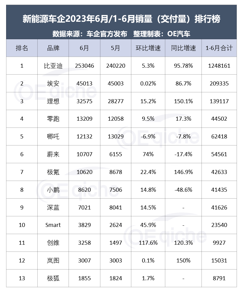 2023-07-04 09:07:157月伊始,各大新能源,新势力品牌如期对外公布最新月度交付量,OE汽车根据车企官方公开的数据 南瓜影院,整理出主要新能源车企的销量及交付量数据。
