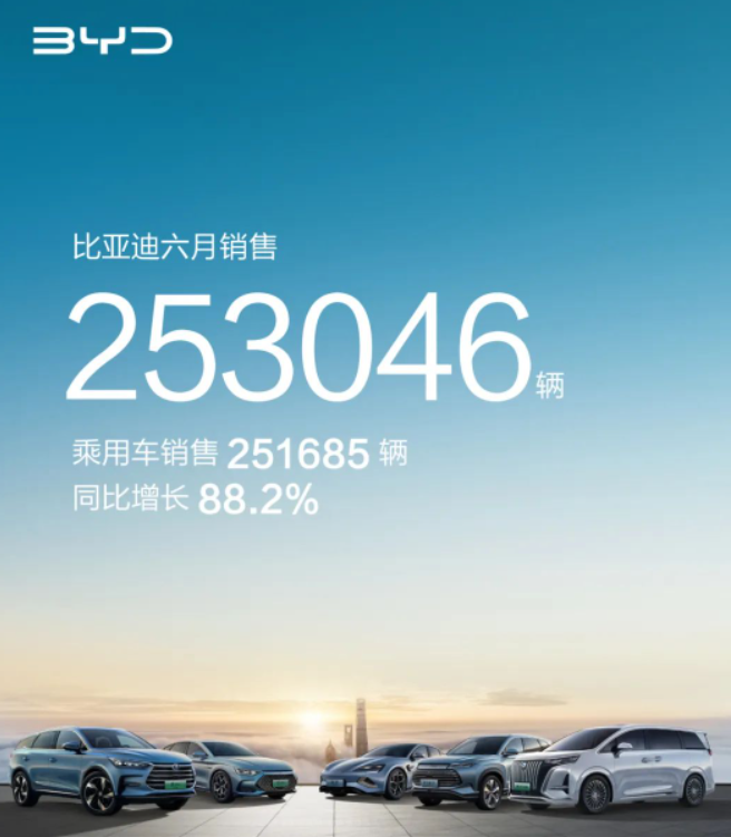 比亚迪一骑绝尘,6月新能源汽车销量253046辆,今年上半年累计销量约126万辆,同比增长95,78%。 南瓜影视资源。