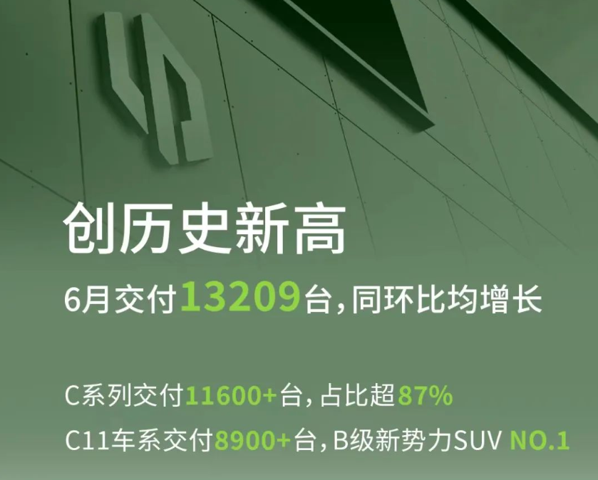 零跑汽车6月全系交付13,209辆,环比增长9 南瓜影院在线观看,6%,同比增长17,3%。其中C系列交付11600+辆,占比超87%;C11车系交付8900+辆,位居B级新势力SUV交付量NO,1。。