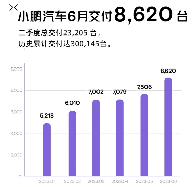 小鹏汽车6月共交付新车8,620辆,环比增长15%,连续5个月实现正增长,但同比下滑44%。小鹏新车G6已经正式上市,官方公布的数据显示,截至28日,G6预售订单量已突破3.5万台,将于本月正式启动交付。